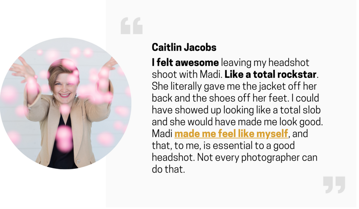 But if you're like most other people, this experience will upgrade your brand and for some of you, it will be the first pictures you actually like of yourself!