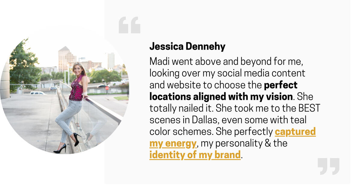 Madi will coach you at every step of your photoshoot so you get the pictures your brand needs!She’s a master at helping you communicate what makes you unique and powerful into pictures.She will help walk you through the “how to” of turning your ideas of what you want to say to people into pictures you will be proud to post anywhere.
