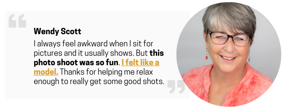 The second step is to trust our direction and process! We've helped thousands of people show their most powerful and authentic self without feeling uncomfortable in front of the camera.